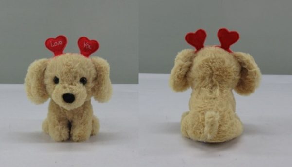 Valentine’s Day Plush Dog with Heart Headband Gift for Valentine’s/Anniversary Day, 6.5-in