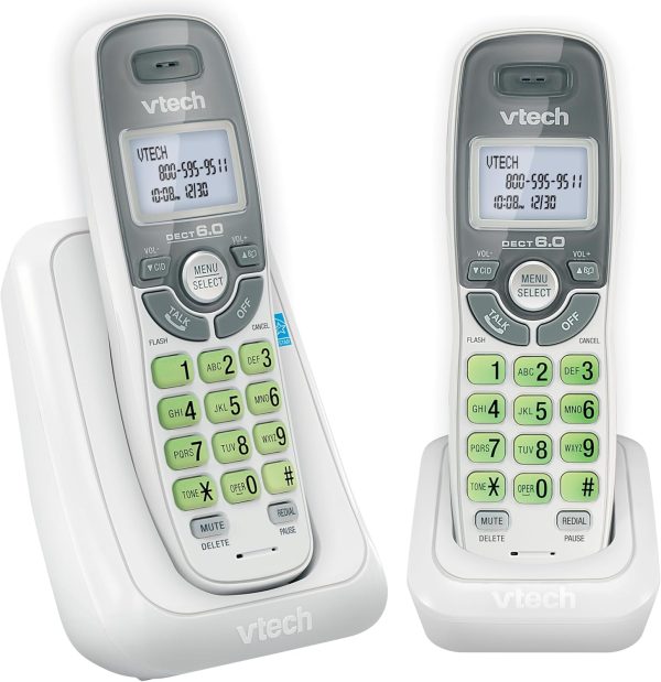 The VTech CS6114-2 2 Handset DECT 6.0 Cordless Phone with Caller ID allows you to stay connected. DECT 6.0 transmission gives you private, interference-free sound from any room in your home. A backlit keypad and display allow for easy operation and dialing in low light. Know who’s calling with the Caller ID/Call Waiting feature.