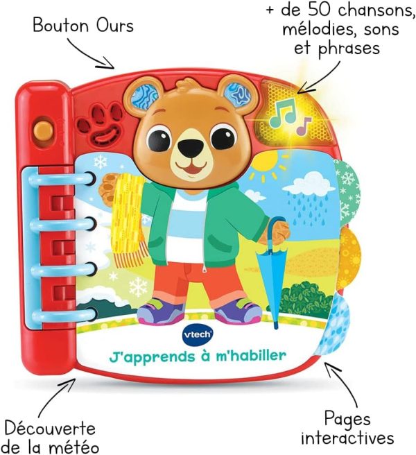 Guide your toddler away from wearing shorts in the snow with the Bear’s Dress & Discover Book. This interactive book helps your little one understand what to wear for sunny, snowy and rainy weather. See Bear in three weather scenes—with the right clothes for the weather! Three chunky tabs make it easy for your little one to turn the pages. Here is Bear on a snowy day, wearing everything needed to stay warm. A sunny day at the beach is the right weather for Bear to wear shorts and a T-shirt. Next, find Bear on a rainy day, happily wearing a raincoat and boots. The bear button encourages little hands to press and explore with 50 songs, melodies and phrases about weather and clothing. Intended for ages 12-36 months. Requires 2 AAA batteries. Batteries included for demo purposes only. New batteries recommended for regular use.