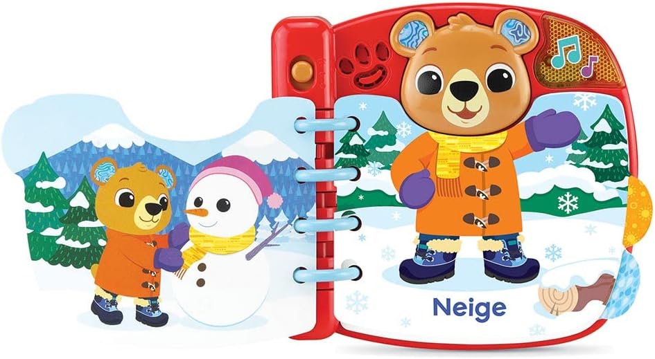 Guide your toddler away from wearing shorts in the snow with the Bear’s Dress & Discover Book. This interactive book helps your little one understand what to wear for sunny, snowy and rainy weather. See Bear in three weather scenes—with the right clothes for the weather! Three chunky tabs make it easy for your little one to turn the pages. Here is Bear on a snowy day, wearing everything needed to stay warm. A sunny day at the beach is the right weather for Bear to wear shorts and a T-shirt. Next, find Bear on a rainy day, happily wearing a raincoat and boots. The bear button encourages little hands to press and explore with 50 songs, melodies and phrases about weather and clothing. Intended for ages 12-36 months. Requires 2 AAA batteries. Batteries included for demo purposes only. New batteries recommended for regular use.