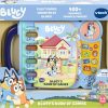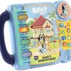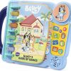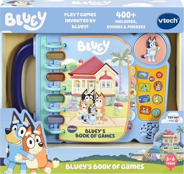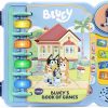 Let’s play! Turn the pages of Bluey’s Book of Games and pretend with Bluey and Bingo. Playful pups Bluey and Bingo love playing pretend using objects around the house. Fourteen pages encourage discovery and showcase Bluey and Bingo’s pretend-play adventures from the show. Press the large Bluey button to hear her say familiar phrases. Hear Bingo introduce their parents and herself by pressing the Bingo, Dad and Mum buttons. Want to play a game? Choose four different activities to play with Bluey and Bingo. In Story mode, Bluey wants to show you her favorite pretend-play games. Each page features a different game for you to explore together. Help Bluey find the four things needed to play each game in Play Together mode. Music time! Add sound effects to the melodies by pressing the four colorful light-up buttons in Music mode. Let’s play follow the leader. Bluey will ask you to find things in a specific order in Follow the Leader mode. Take the games on the go with the carrying handle. Let’s play together! Intended for ages 3-6 years. Requires 3 AA batteries. Batteries included for demo purposes only. New batteries recommended for regular use.
