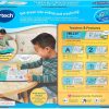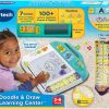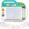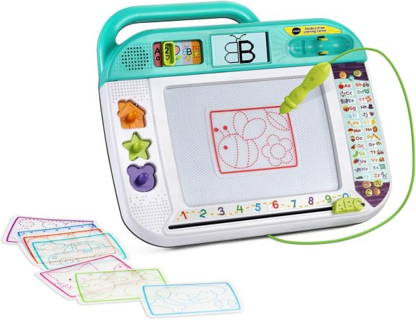 Get drawn into a learning center that shows kids how to write letters, numbers, objects and their own name! Watch the animated demonstrations and follow along with the step-by-step instructions using the stylus. Practice uppercase letters, lowercase letters, numbers 1-10 and 16 shapes. Discover how to draw objects and animals or make masterpieces using three stamps, eight stencils and kid creativity. Draw while listening to different tunes and hear the stylus make silly sounds. Clear it all away for more play by sliding the ABC slider. Intended for ages 3-6 years. Requires 2 AA batteries. Batteries included for demo purposes only. New batteries recommended for regular use.