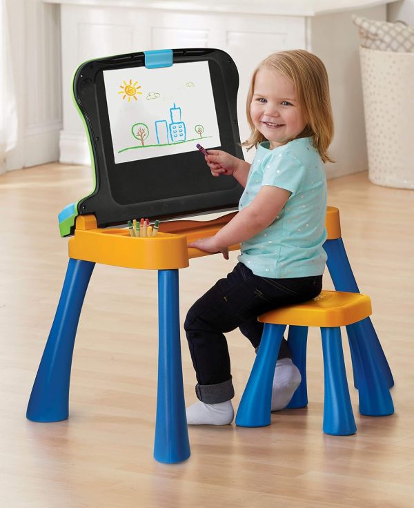 - Encourage kids to learn, create explore with an interactive desk that transforms into an easel and chalkboard; makes the perfect gift for little ones getting ready for school