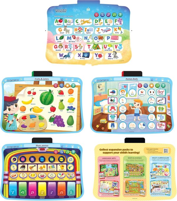 - Includes five interactive pages that introduce letters, numbers, music, colors and more; expansion packs sold separately