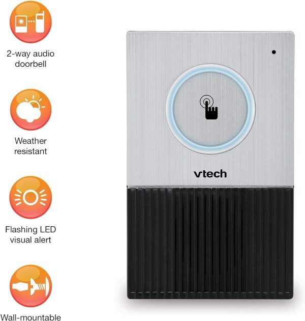 - 2-Way audio Doorbell: talk to visitors from inside your home with a Cordless Phone System and this accessory device. The handset and base (sold separately) Chime when a visitor presses the button on the included doorbell. Then, you can have a two-way conversation without getting up.