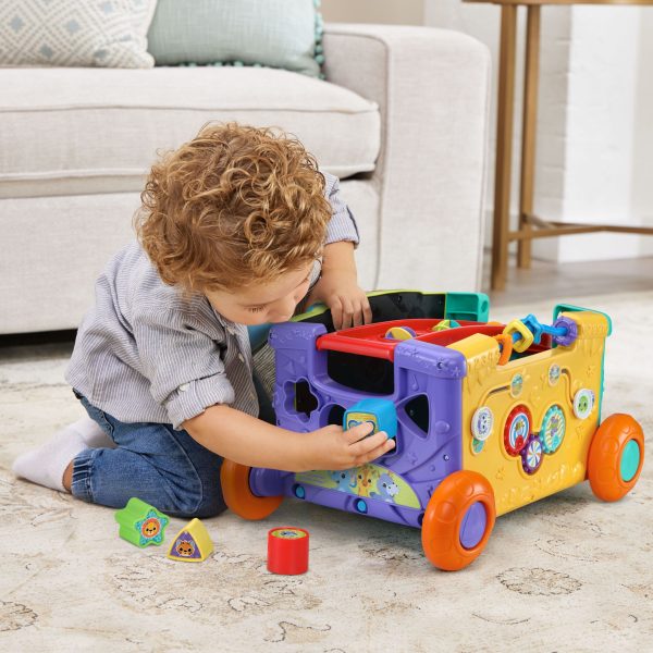 The Vtech® Sort & Discover Activity Wagon is a wagon full of fun and exploration. Each side offers engaging activities like shape sorting, gear spinners, electronic activity keys, mazes, and peek-a-boo doors, sparking curiosity and learning through play. Little adventurers can load up their favourite toys, snacks, and stuffies as they roll out on their next big adventure. Whether pushing or pulling the wagon, kids are rewarded with cheerful music and sound effects to keep the excitement going. For added fun, fold over the handle to create a bonus fifth side with colourful spinners. Plus, it makes storage a breeze. The Sort & Discover Activity Wagon is a playful, interactive way to keep little ones entertained and on the move.