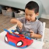 Meet the Spidey team from the hit MARVEL show Spidey and his Amazing Friends, and see what this 2-in-1 driver can do! Turn the hand grips and easily transform the vehicle between Spidey’s Web-Crawler and Spin’s Techno-Racer. Practice driving each vehicle while exploring the rules of the road. Learn about Spidey and his friends Spin, Ghost-Spider, Ms. Marvel and Hulk by pressing the WEB-Ster or character buttons. Team up with Spidey to play seven thrilling games and follow instructions to complete missions – like rescuing a puppy or stopping super-villains such as Doc Ock, Green Goblin, and Rhino. What a ride! Intended for ages 3+ years. Requires 2 AA batteries. Batteries included for demo purposes only. New batteries recommended for regular use.