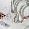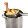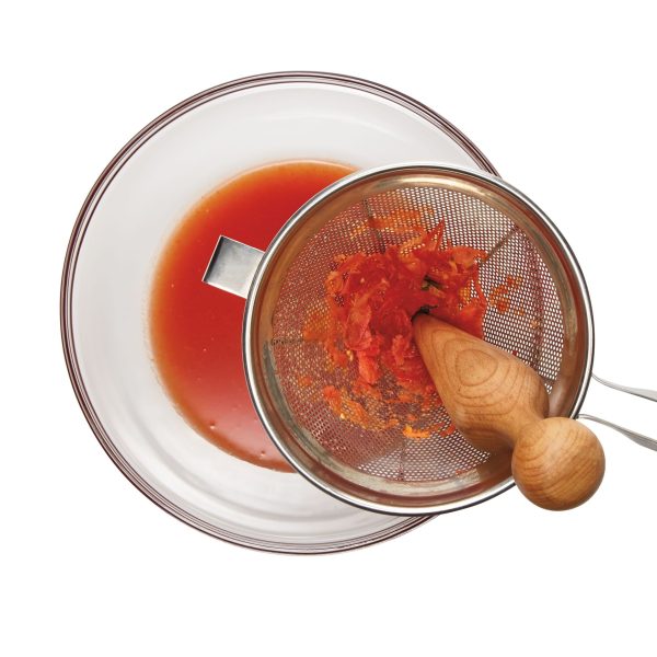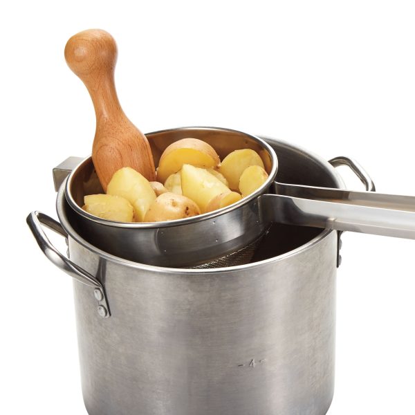 The Weston® Stainless Steel Cone Strainer and Pestle Set includes the stainless steel cone strainer, stainless steel support stand, and solid-wood pestle. It’s ready to use out of the box to mash and sieve soft foods to a fine, smooth consistency. It’s perfect for making apple sauce, berry jams, tomato puree, mashed potatoes, and many other foods. Use the pestle to mash and press cooked foods like tomatoes, grapes, apples and potatoes through the strainer. The strainer is also great for straining soups, stock, and sauces. The perforated 1.5 mm fine mesh stainless steel strainer prevents pulp, skin, seeds and small pieces of food from slipping through into your bowl or pan. The cone shape lets you catch more food debris without stopping. The cone strainer holds 2 quarts or approximately 1.9 liters of food. It’s the perfect size for making large quantities of food or for combining different foods while mashing. The cone strainer handle and bowl hook help to prevent the strainer from slipping when its resting on the side of large bowls or pans. The strainer and support stand are easy to clean and dishwasher safe.