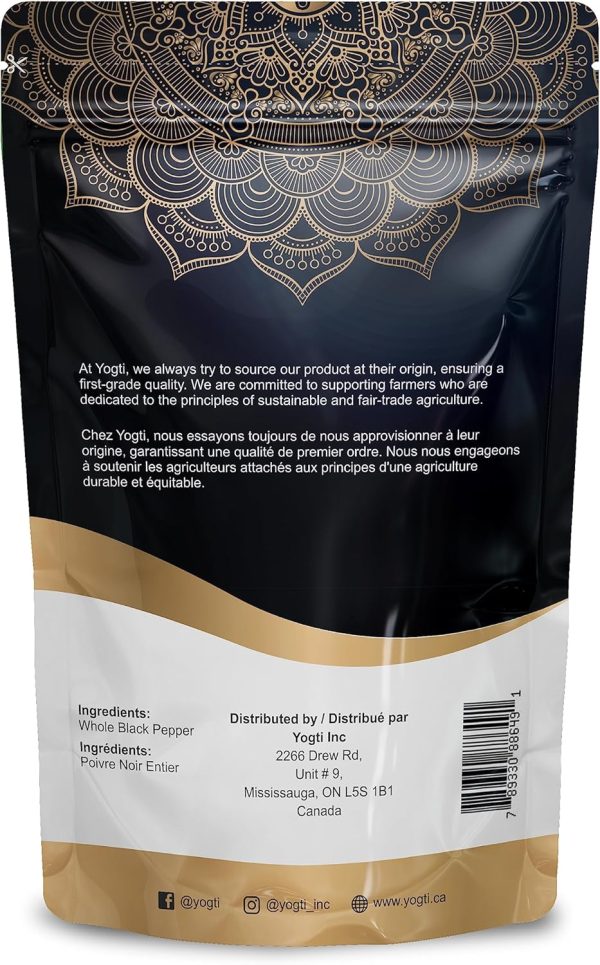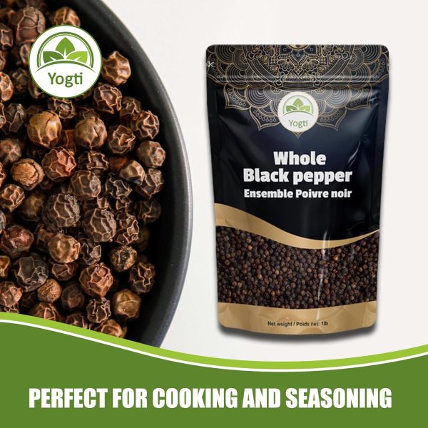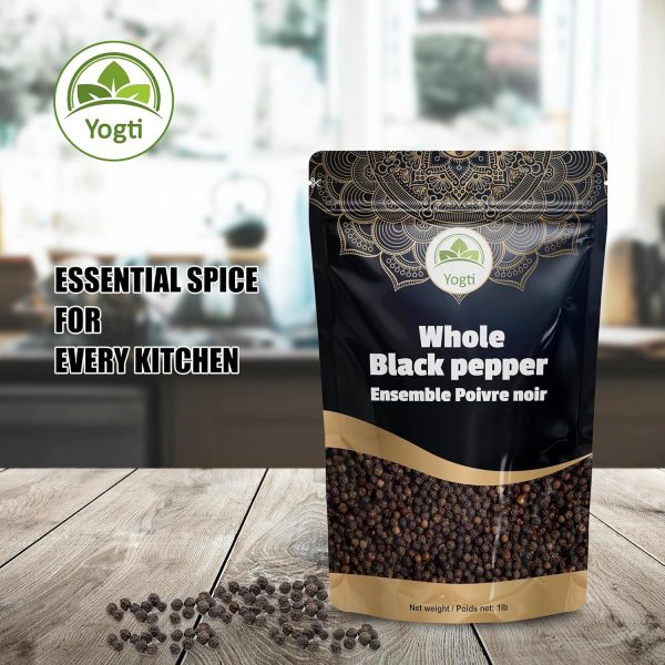 Yogti [Canadian Brand] Black Pepper Whole Black Peppercorn 1 LB; Culinary essential; Pure and Natural Spice, Perfect for Grinder refill, 1 Pound