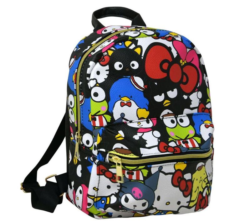 This mini backpack features beloved characters from Sanrio, including Hello Kitty and her friends Tuxedo Sam, Kuromi, My Melody, Chococat, Keroppi, and Badtz Maru. Perfect for fans of all ages, it’s a fun and fashionable way to carry your essentials while showing off your love for these adorable characters.