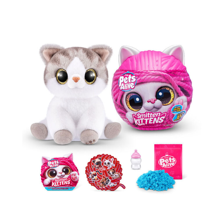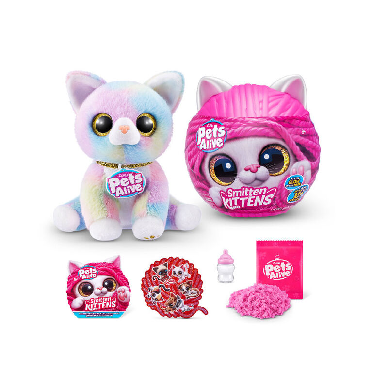 These kittens are your next purr-fect pal! Feed your hungry kitten using their milk bottle and hear them purr. Adopt all 8 kittens, including the ultra rare Rainbow Kitty! Unbox 5 surprises, including kitty litter compound. These adorable kittens make over 10 real life kitten sounds and their eyes glow in the dark! They can’t wait to meet you!