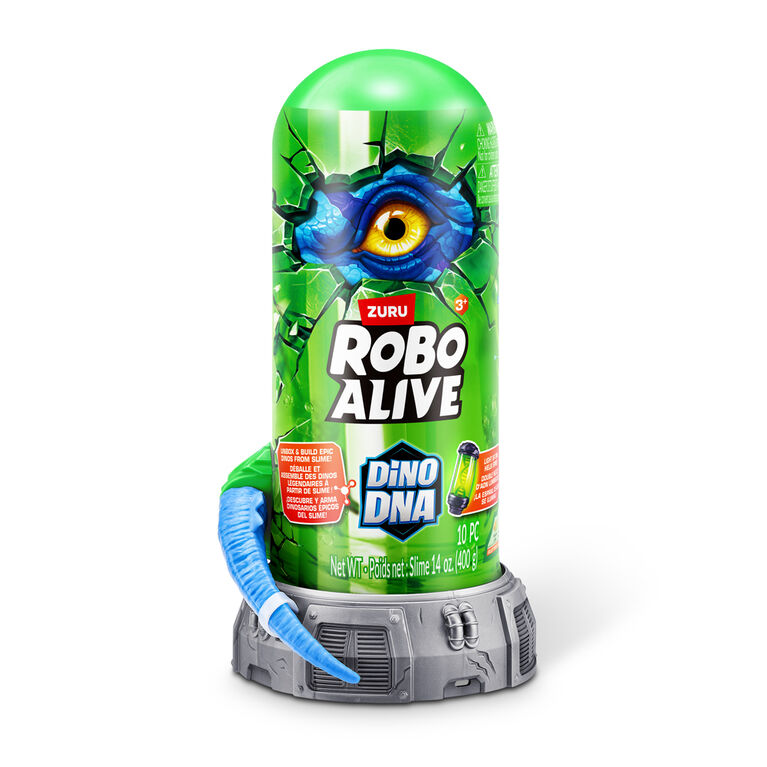 Uncover the secrets of the past with the Robo Alive Dino DNA Light-up Helix Spine. Unbox and search through the oozing slime, find the dino parts and build epic dinos. 3 Dinosaurs to build and collect. It’s time for you to discover the secrets of the past and unlock your inner paleontologist.