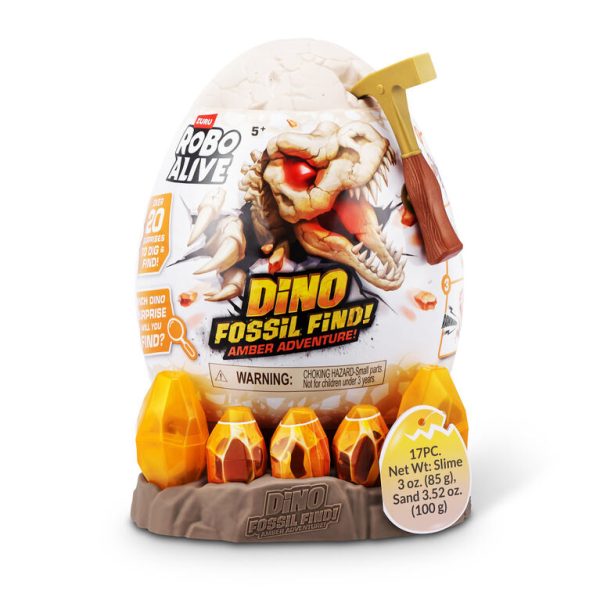 Calling all explorers! Embark on an exhilarating journey with Robo Alive Fossil Find Amber Adventure! Delve deep into layers of rock and sand, and be careful of the Magma glow-in-the-dark slime that adds an unexpected twist to your excavation. Unearth hidden dinosaur fossils and enchanting Amber eggs. Assemble the fossils to see your dinosaur spring to life with stunning light-up features. This interactive adventure offers the thrill of discovery and the fun of collecting and building four unique dinosaurs. Engage in this captivating exploration and experience the wonder – what ancient dinosaur will reveal itself from your exciting search?